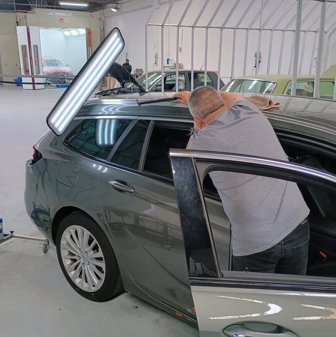 Combinamos la técnica del varillaje con nuestro túnel LED de inspección, lo que nos permite detectar imperfecciones mínimas y garantizar un acabado perfecto antes de la entrega.